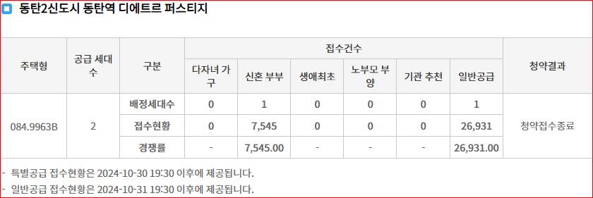- 일반공급 접수현황은 2024-10-31 19:30 이후에 제공됩니다.