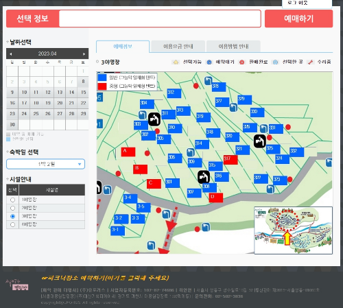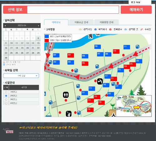 주말, 연휴, 대체휴일인 날 예약이 빠르게 마감되기때문에 미리 야영장 자리 번호를 생각해 놓으셨다가 예약하시면 성공할 수 있습니다.