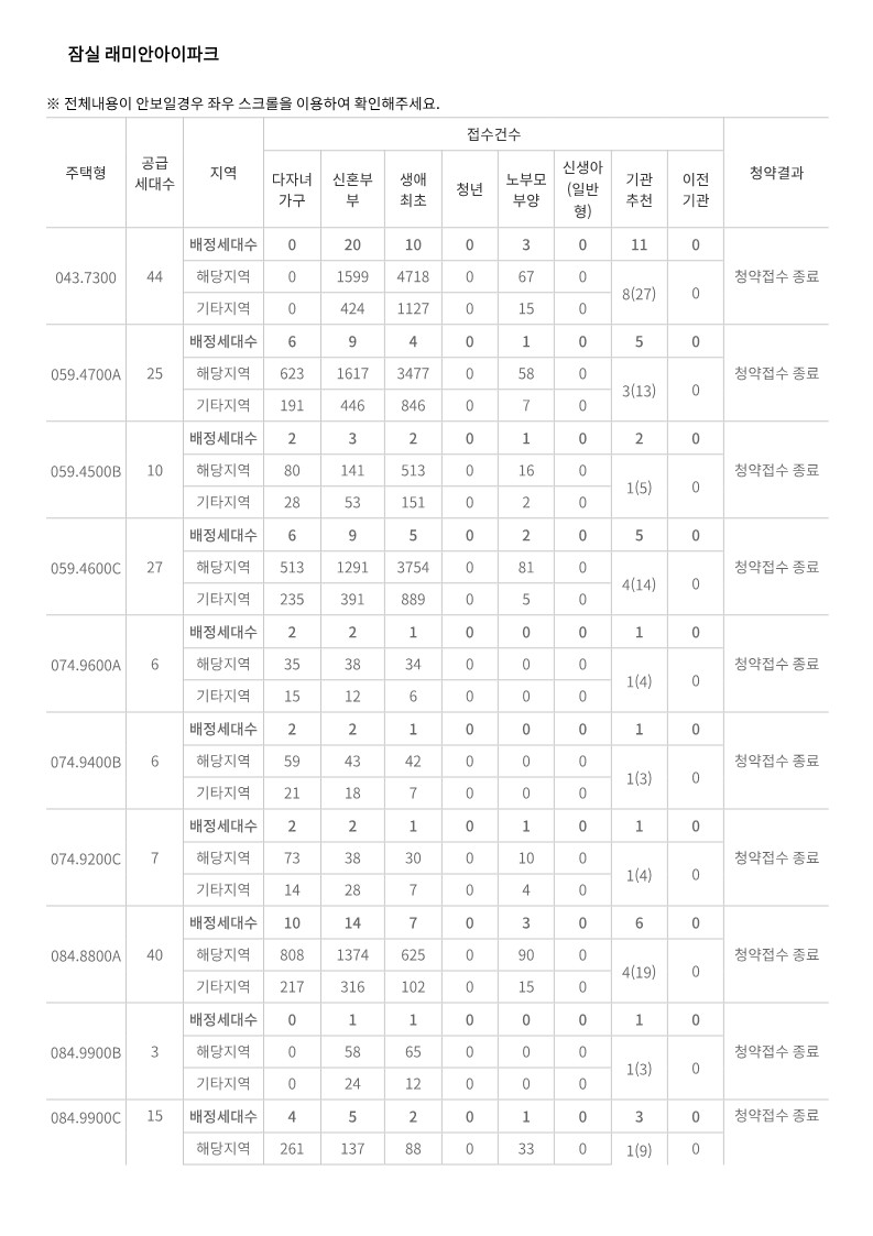잠실 래미안 아이파크 특별공급 접수마감