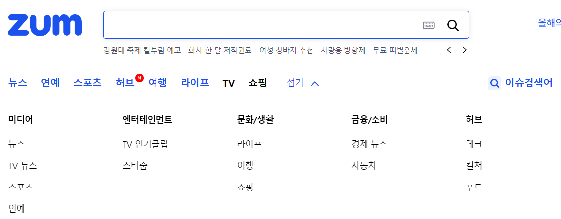 ZUM은 네이버, 다음, 구글과 같은 포털사이트 입니다.