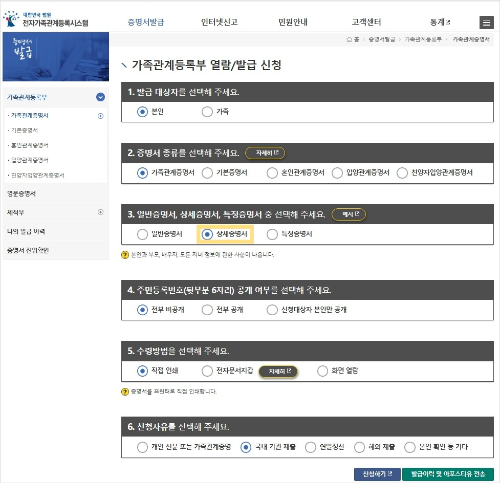 가족관계증명서(상세증명서)(필수)